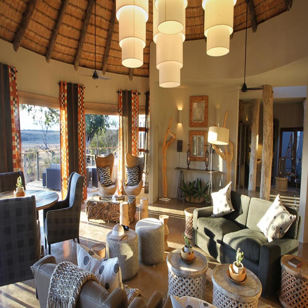 Nambiti Plains Lodge is an ambient environmentally-aware lodge with modern, minimalist interiors, reflecting the surrounding wilderness. Weaving a fine line between luxury and the reality of the African wild, our 5-star lodge is as unpretentious as it is pristine. Imaginatively weaved and constructed, Nambiti Plains Lodge is perched on the edge of a waterhole overlooking the abundant plains of Nambiti. Spaces are open and uncluttered, leading you to focus on the incredible views of the bushveld beyond. The lodge is unfenced so that animals can roam freely. Presided over by the ancient fig tree, relax with a cocktail at the swimming pool, or recline on your private deck and watch the animals drink at the waterhole.